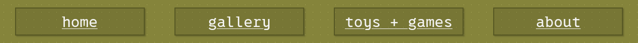 The 'toys+games' button will take you to a page that is currently unfinished, but it's where I hope to put a bunch of little interactive demos and games that hopefully will allow some level of of interaction between users of the site.